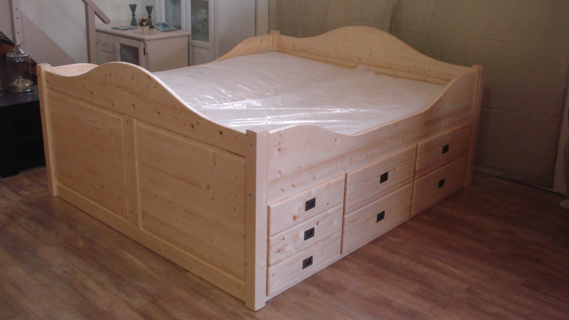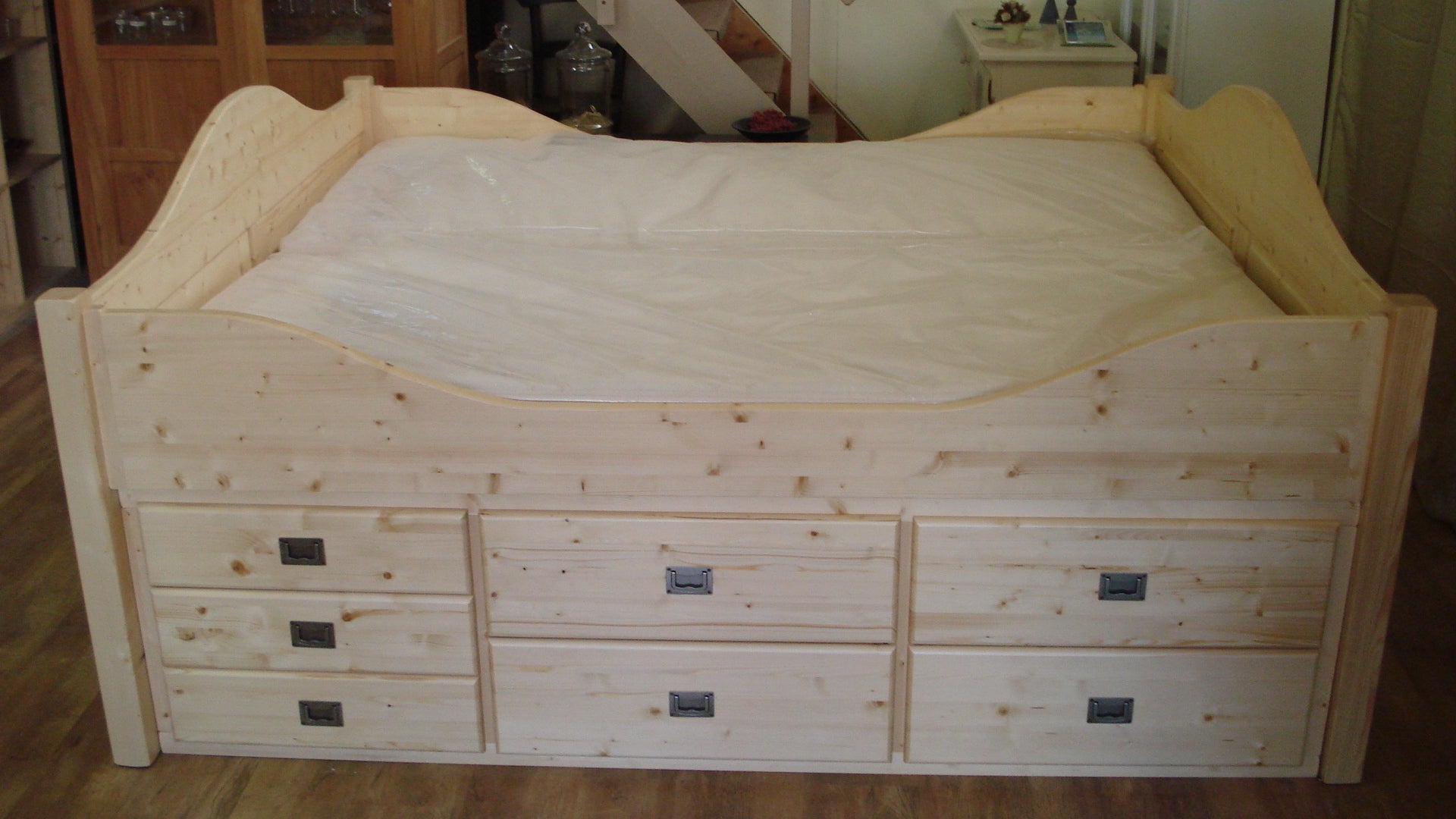 Kajuitbed in vurenhout onbewerkt.Het schuif- en lade blok is aan 2 kanten te plaatsen als u een breder model wil of u kunt ook 2 blokken bestellen zodat u aan 2 kanten een blok heeft.Ook dit is een bed waarmee u veel ruimte bespaart en opbergruimte heeft.Inclusief lattenbodem standaard maat 90-200.Het model is in overleg altijd aan te passen.
